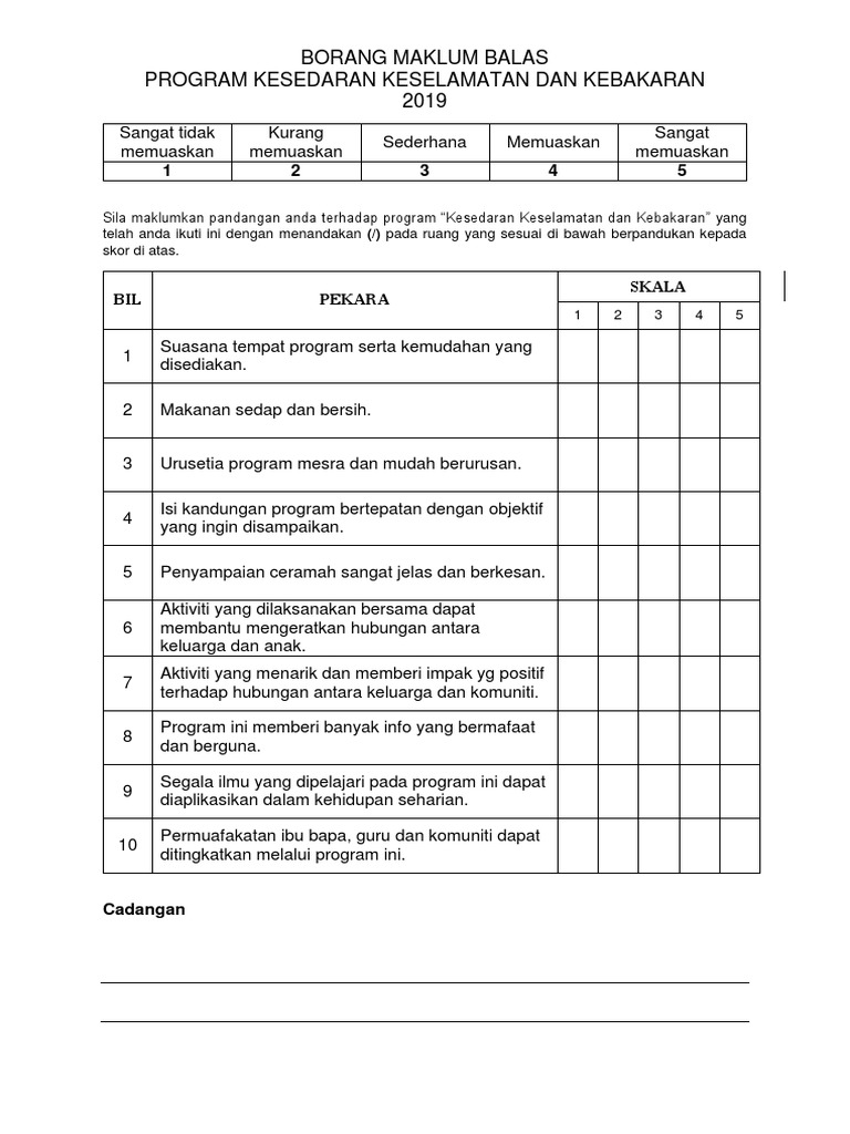 Borang Maklum Balas Prgram Kesedaran Keselamatan Dan Kebakaran 2019