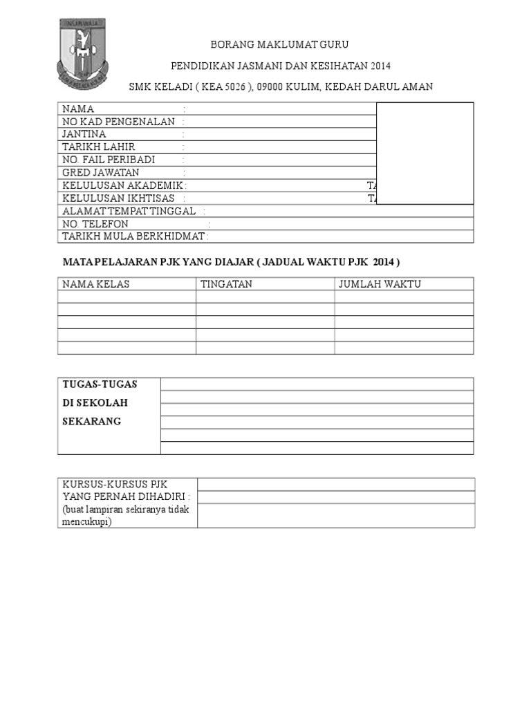 Contoh Borang Biodata Guru Untuk Fail Panitia