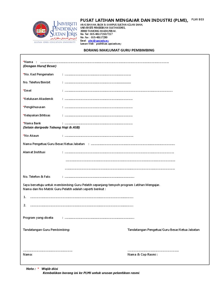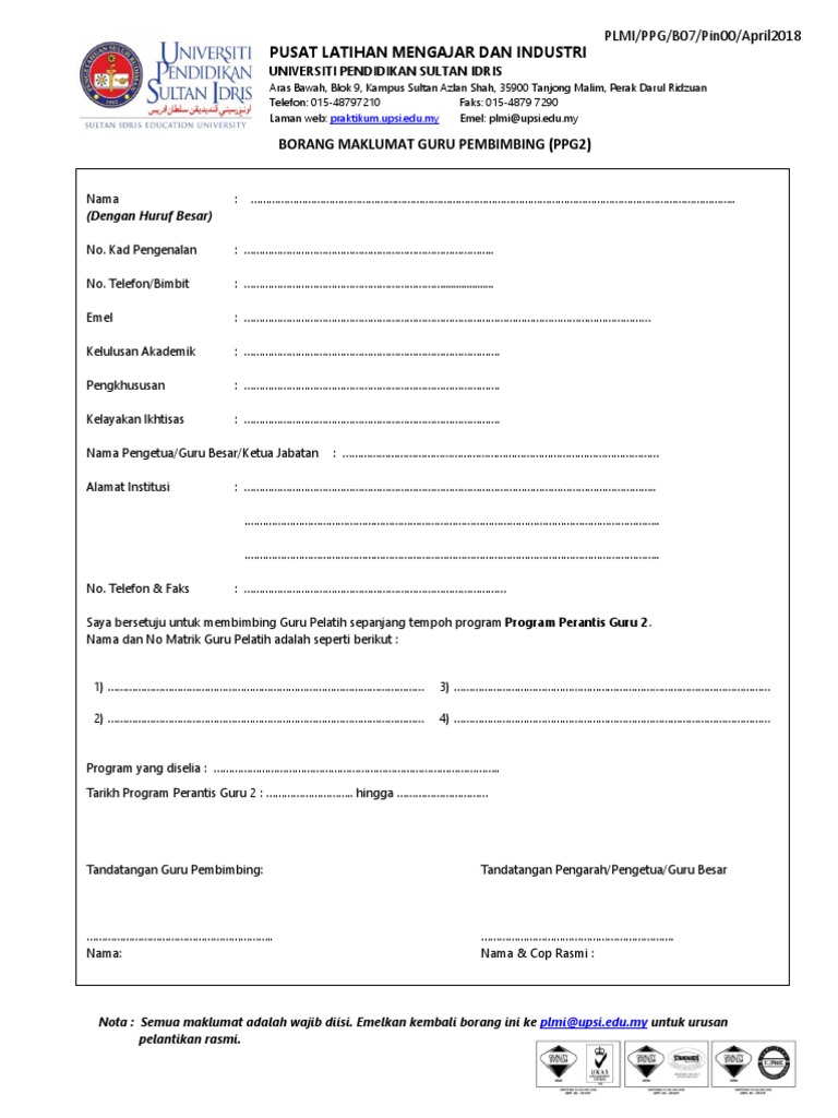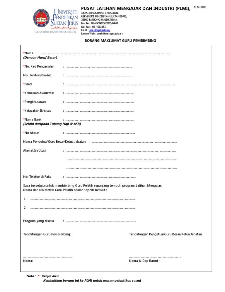 Borang Maklumat Guru Pembimbing Pdf