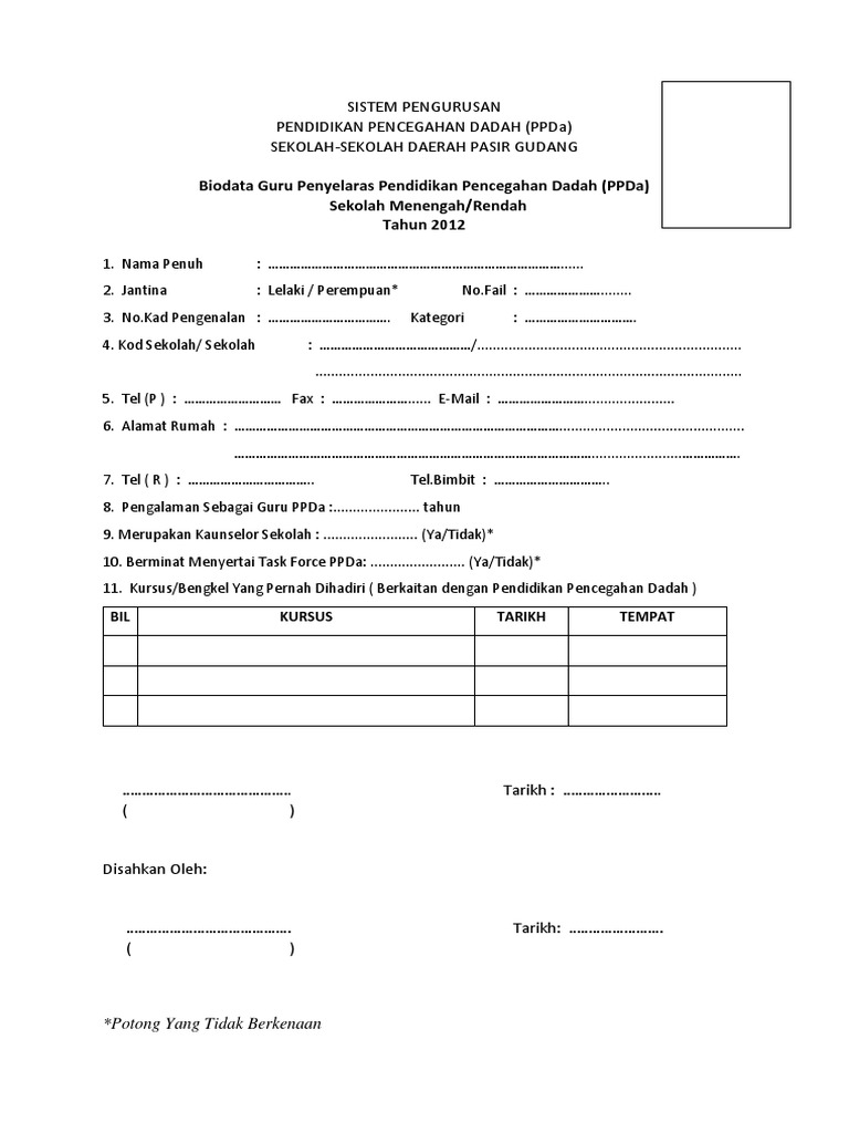Borang Biodata Guru Ppda 2017