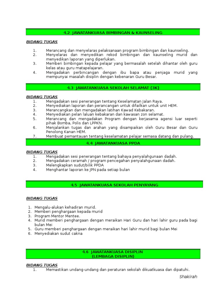 Rujukan Bidang Tugas