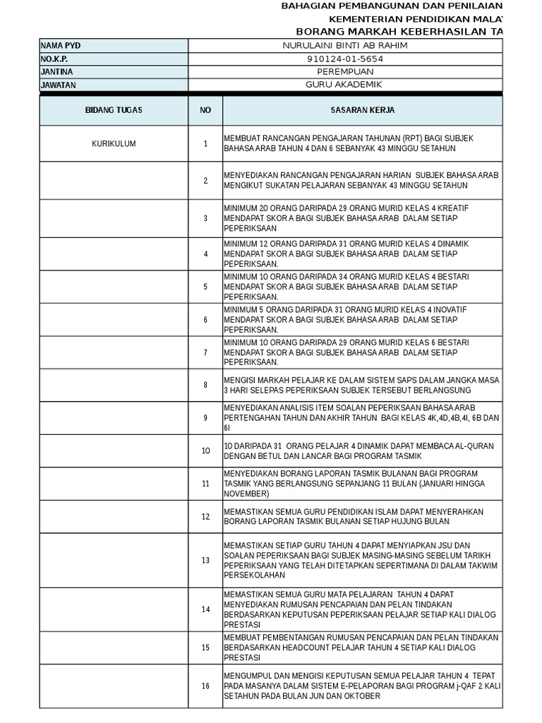 Contoh Borang Keberhasilan Guru Akademik Wall Ppx