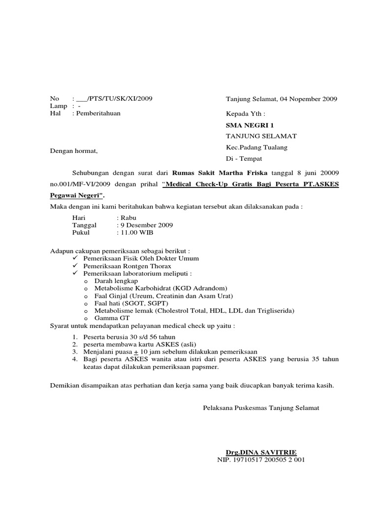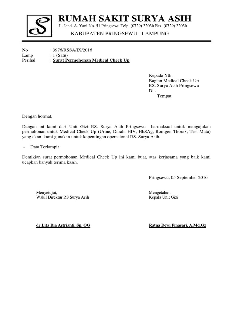 Contoh Surat Pengantar Untuk Medical Check Up Kumpulan Surat Penting