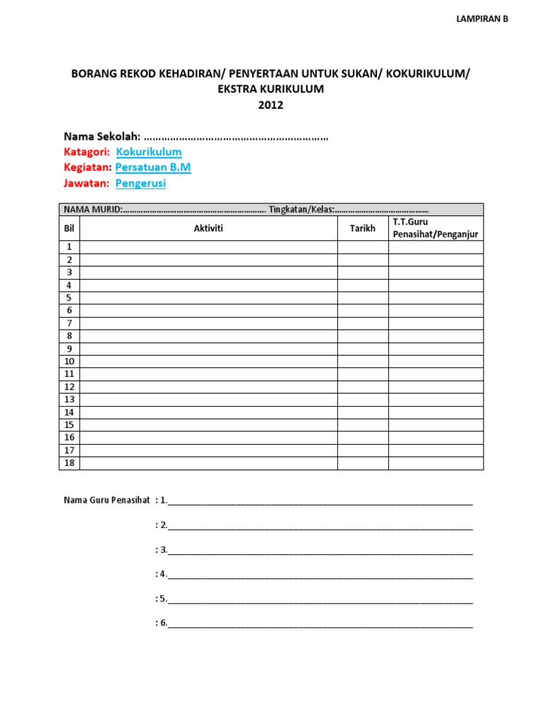 Doc Borang Rekod Kehadiran Pajsk Unit Ict Smkb Academia Edu