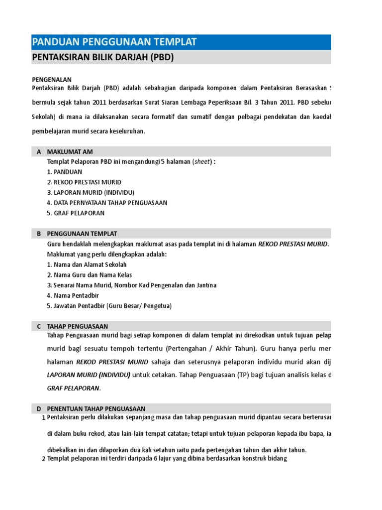 Panduan Penggunaan Templat Pentaksiran Bilik Darjah Pbd