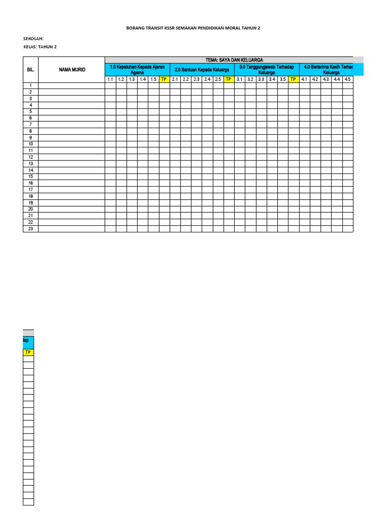 Borang Transit Kssr Semakan Pendidikan Moral Tahun 2
