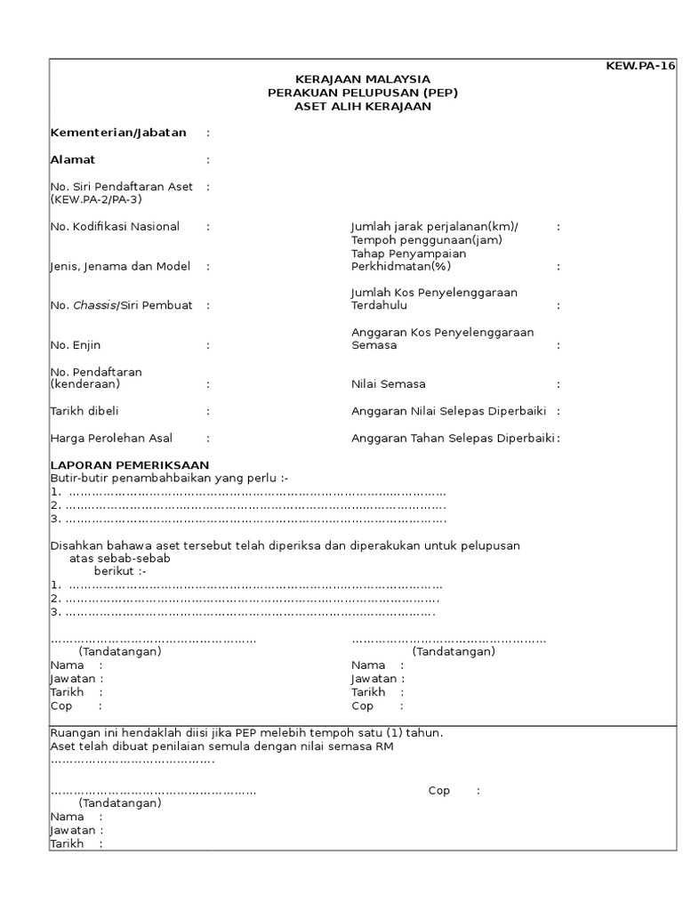 Kew Pa 16 Perakuan Pelupusan Aset Alih Pep Doc
