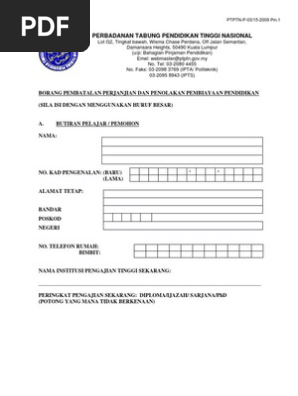 Pdf Borang Pembatalan Dan Penolakan Tawaran Pembiayaan Pendidikan Ptptn Pin 3 Hansel Dansel Academia Edu