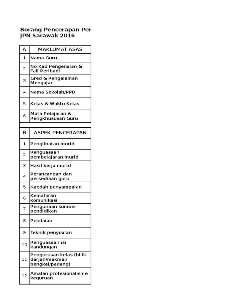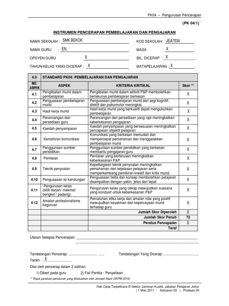 Borang Pencerapan Pengajaran Guru Format Skpm