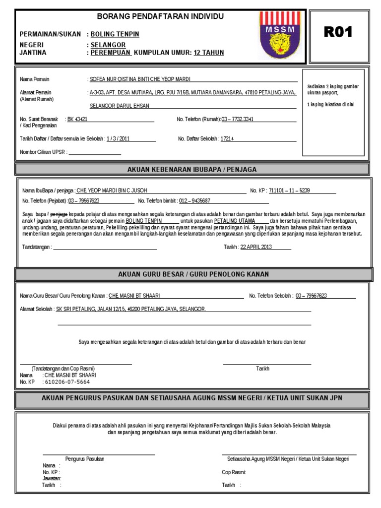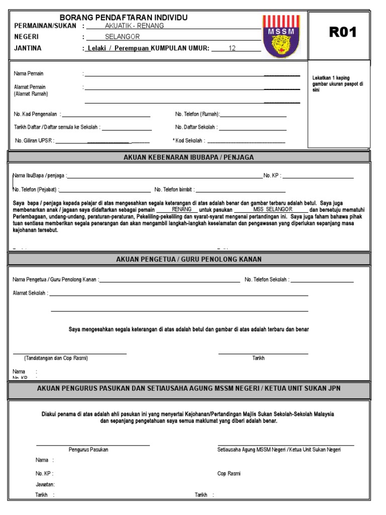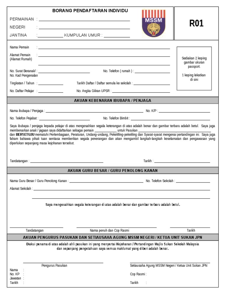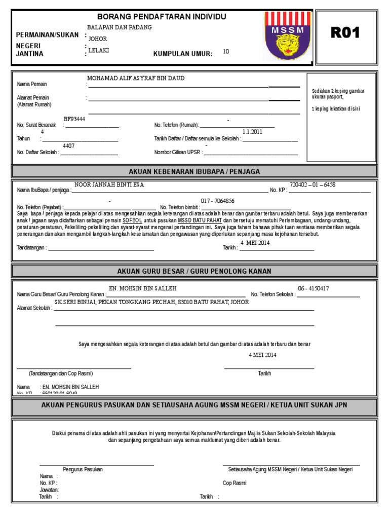 Borang Pendaftaran Individu R01 Mssm Pdf Document