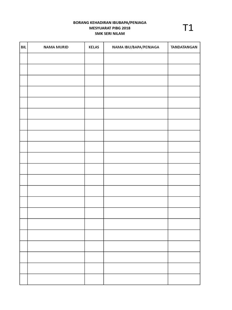 Borang Kehadiran Mesyuarat Docx Document