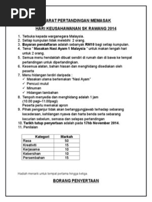 Borang Pertandingan Memasak Hari Terbuka Rbt 2