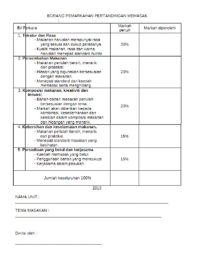 Borang Pemarkahan Pertandingan Memasak 1 Docx