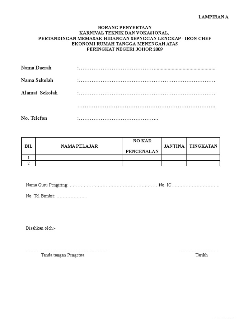 Borang Kebenaran Guru Pengiring Pertandingan Borang Kebenaran Guru Pengiring Pertandingan Memasak Pdf Document