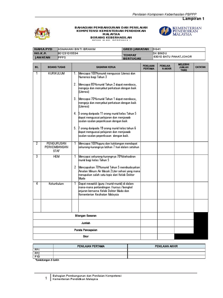Pbppp Borang Markah Keberhasilan Guru Pdp Ahmad Fairuz Mohamad Pdf Document