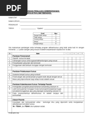 Doc Contoh Borang Penilaian Keberkesanan Latihan Dky Jerry Academia Edu