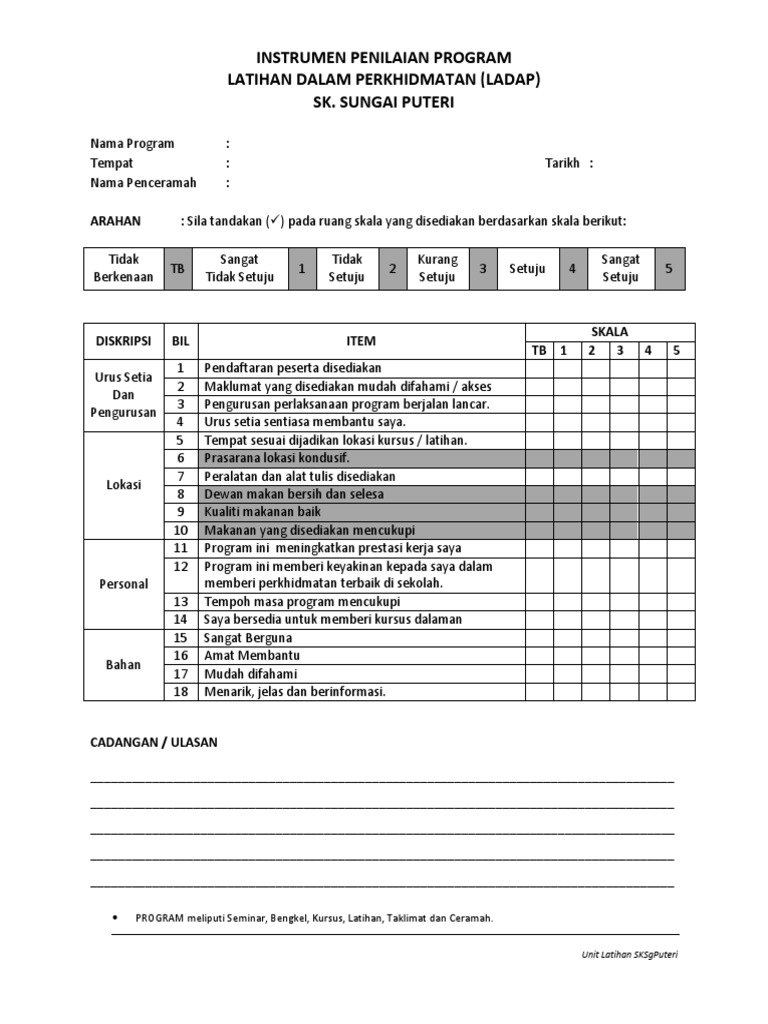Instrumen Penilaian Program Latihan Dalam Perkhidmatan Ladap Sk Sungai Puteri