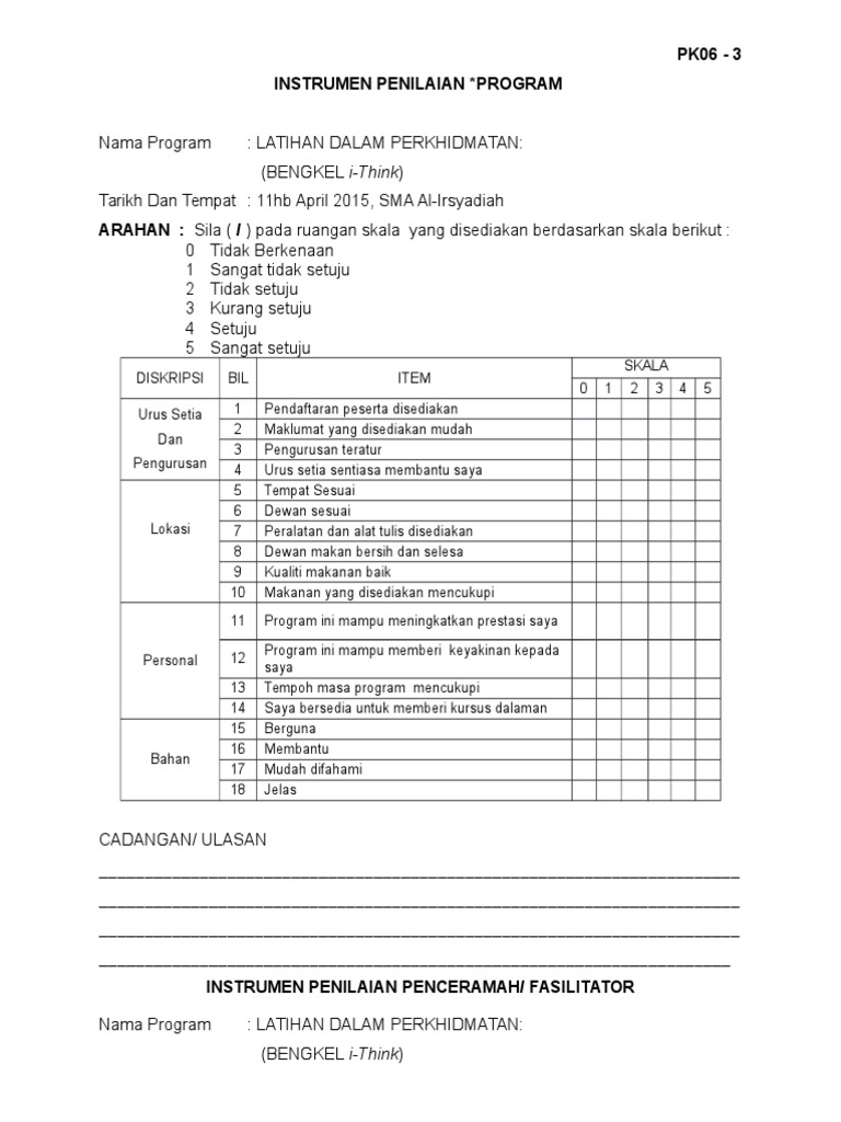 Borang Penilaian Kursus Latihan Dalam Perkhidmatan