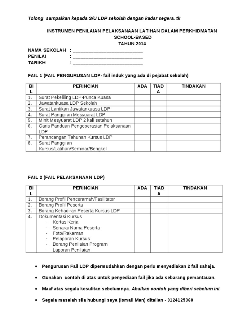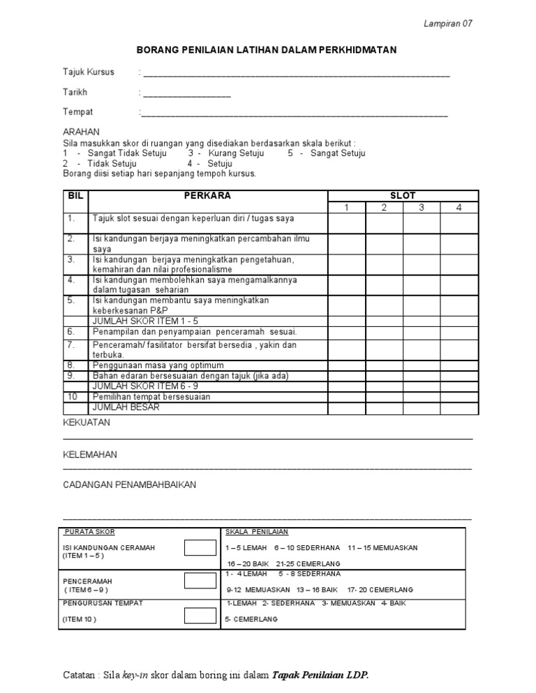Borang Penilaian Latihan Dalam Perkhidmatan Catatan Sila Key In Skor Dalam Boring Ini Dalam Tapak Penilaian Ldp