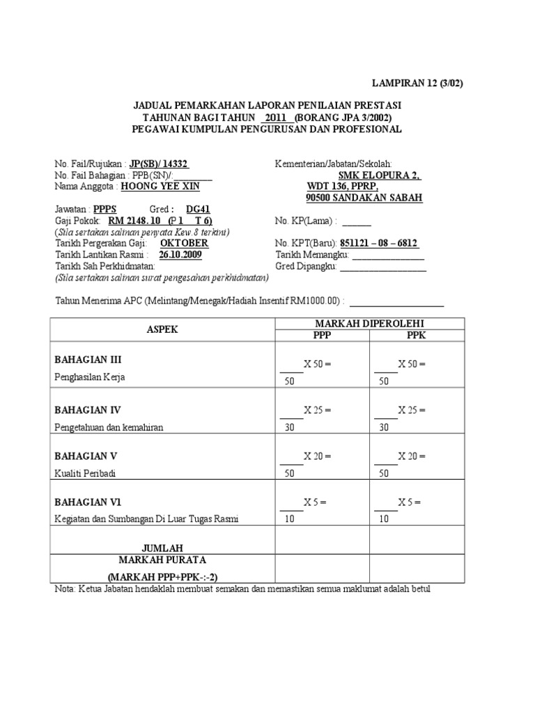 Written by pentadbir sistem. Borang penilaian prestasi pegawai pegawai bahagian iv v garispanduan perlaksanaan sistem pengurusan prestasi baru dalam perkhidmatan awam terkini borang penilaian prestasi lama. Dua peringkat pegawai yang terlibat dalam membuat penilaian prestasi pegawai. Borang kumpulan pegawai a jpa lnpk 1 2009 kumpulan pengurusan tertinggi jusa gred khas b jpa lnpk 2 2009 kumpulan pengurusan profesional.