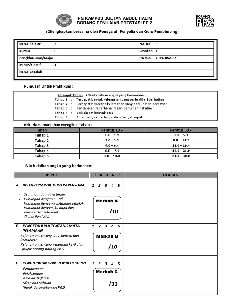 Ipg Kampus Sultan Abdul Halim Borang Penilaian Prestasi Pr 2