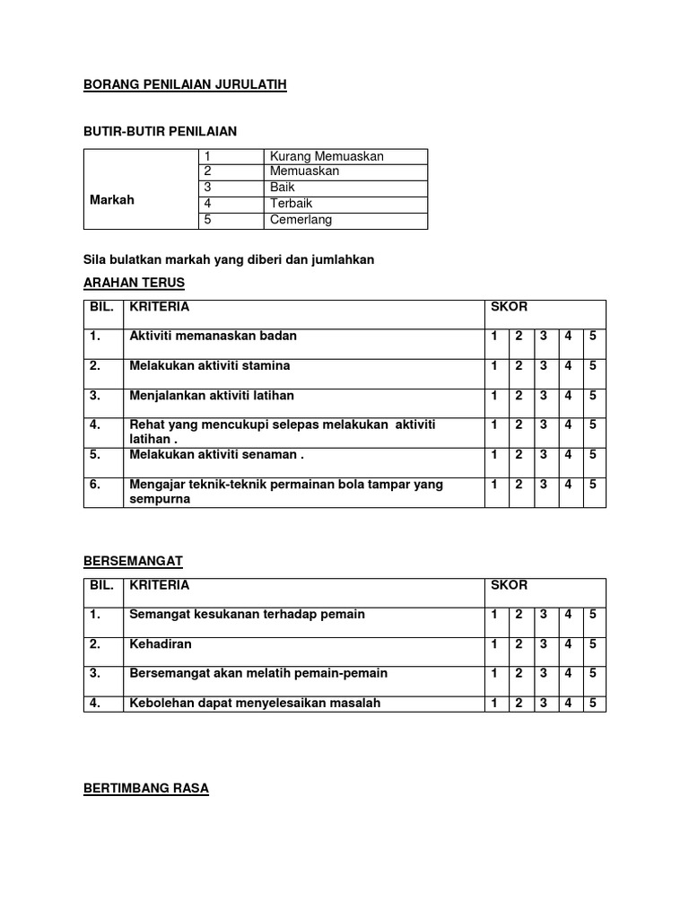 Borang Penilaian Kegiatan Kokurikulum Contoh Borang Penilaian