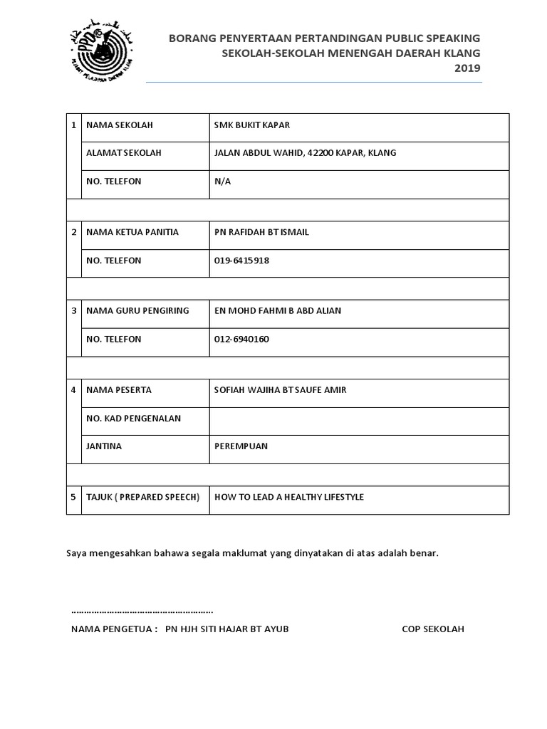 Borang Penyertaan Pertandingan Public Speaking Sekolah Docx