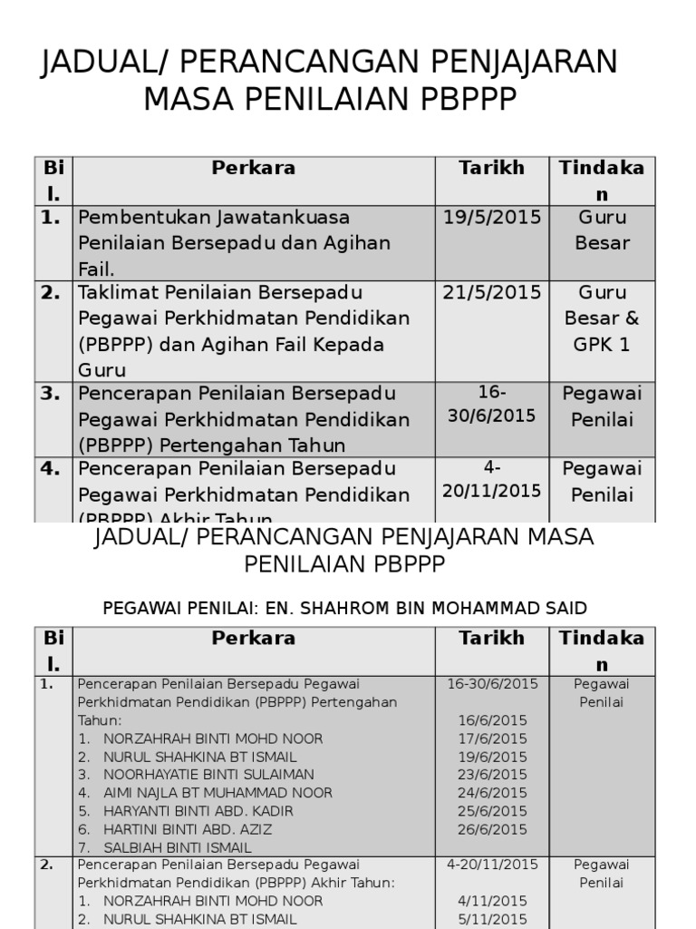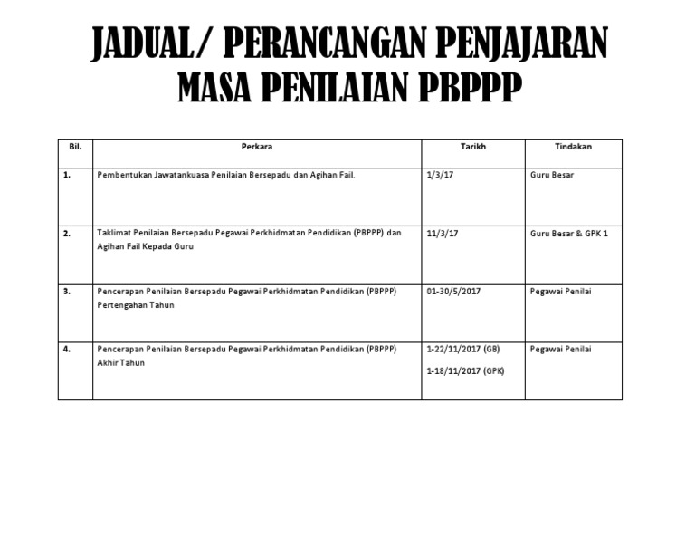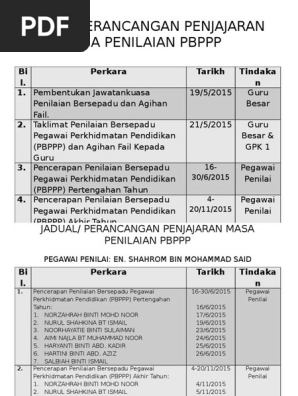 Jadual Perancangan Penjajaran Masa Penilaian Pbppp Pptx