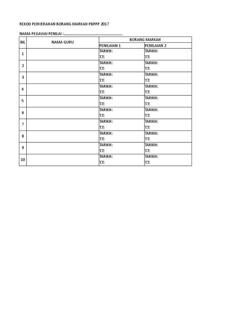 Contoh Rekod Penyerahan Borang Markah Keberhasilan Pbppp