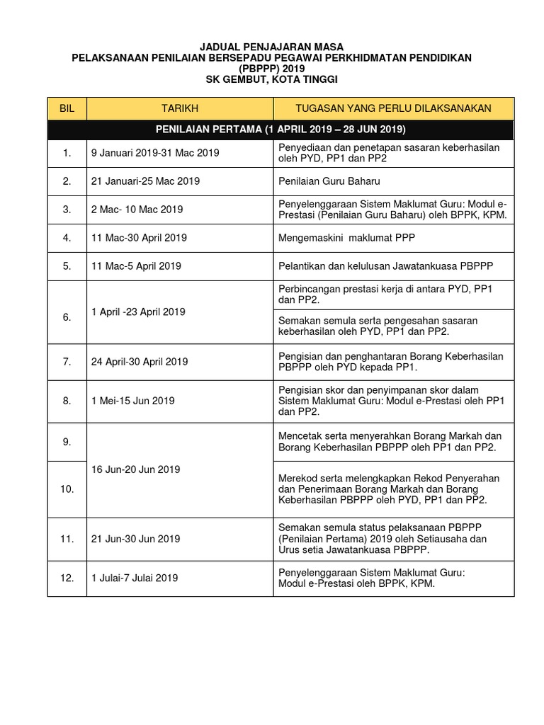 Jadual Penjajaran Masa Pelaksanaan Pbppp 2019 Urus Setia