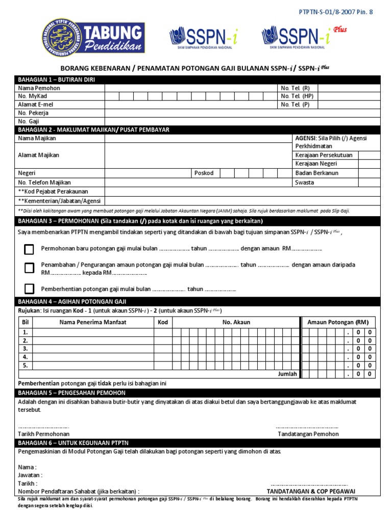 Borang Kebenaran Penamatan Potongan Gaji Bulanan Sspni Plus Pin 8