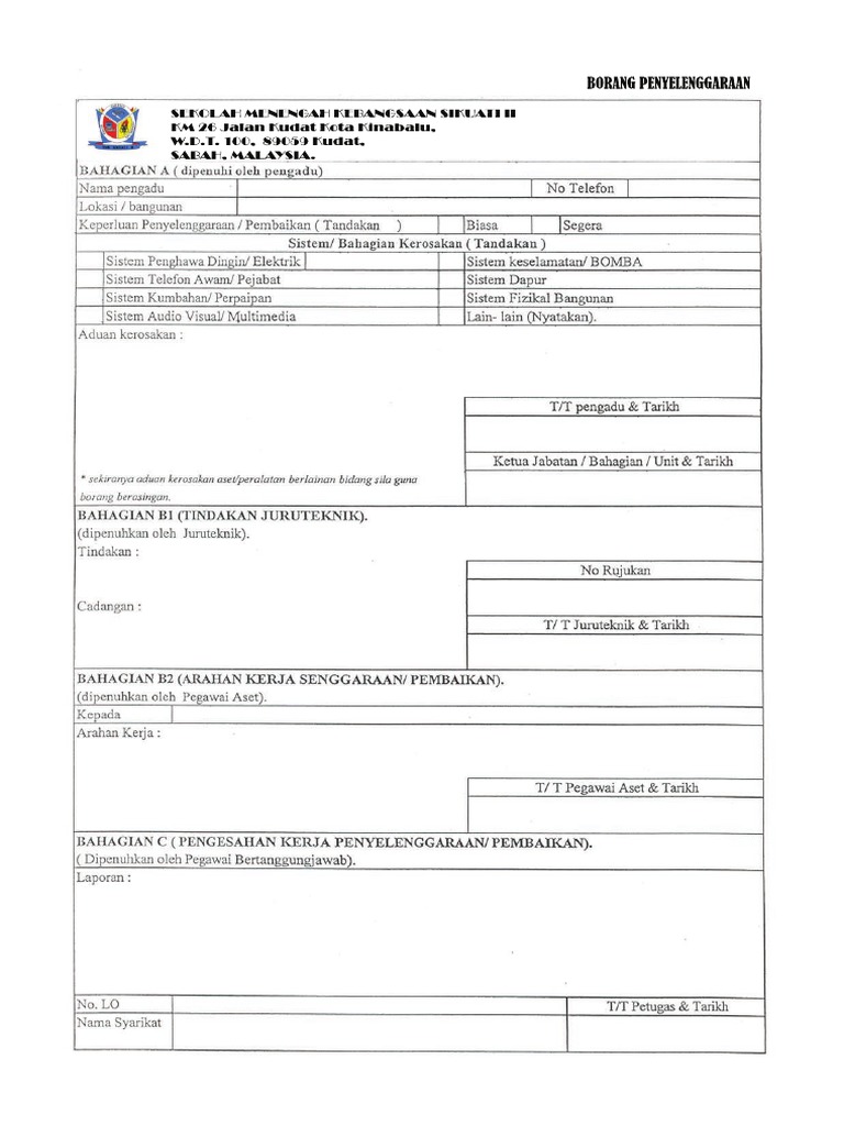 Contoh Jadual Kerja Penyelenggaraan Frasmi