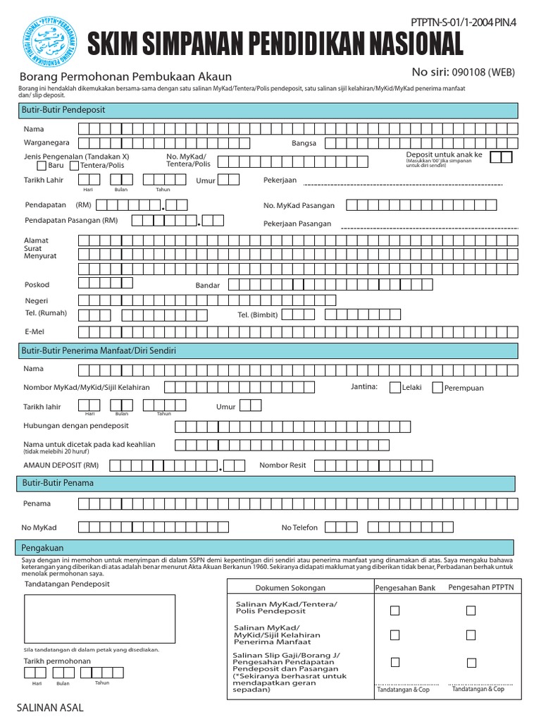 Skim Simpanan Pendidikan Nasional Borang Permohonan Pembukaan Akaun