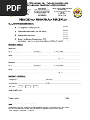 Surat Borang Permohonan Cerai