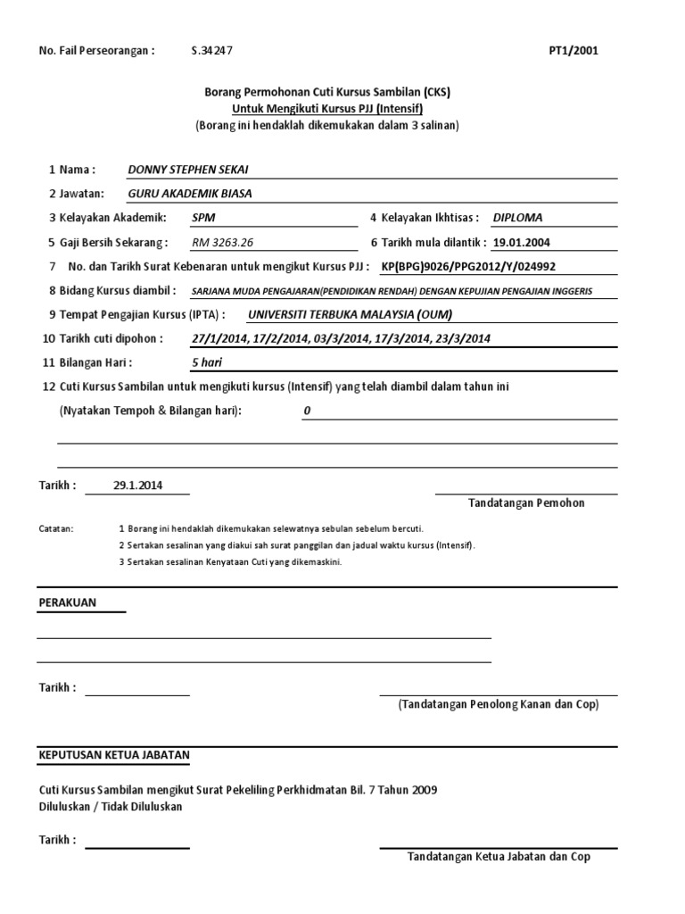 Borang Cuti Kursus Sambilan