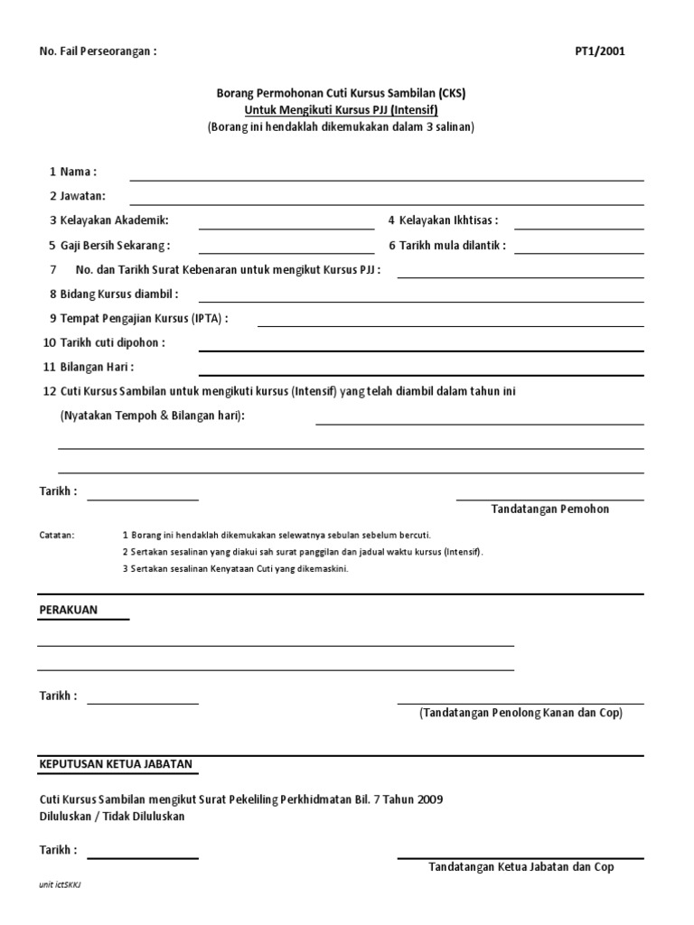 Borang Permohonan Cuti Kursus Sambilan Pjj