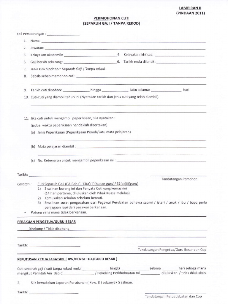 Borang Cuti Tanpa Rekod Separuh Gaji Tanpa Gaj Documents Txt