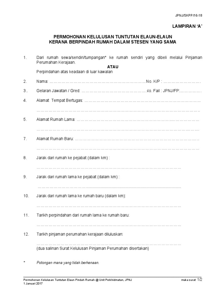 Permohonan Kelulusan Tuntutan Elaun Kerana Berpindah Rumah Doc Document