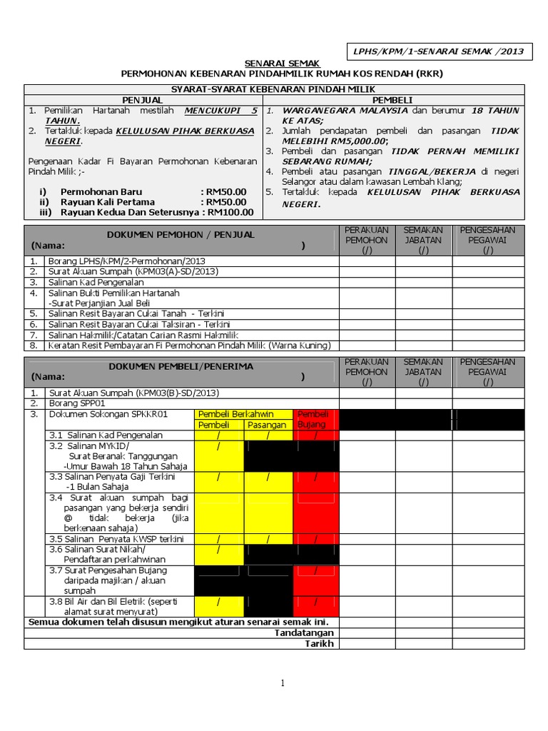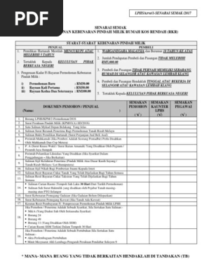Borang Permohonan Kebenaran Pindahmilik Rumah Kos Rendah Rkr