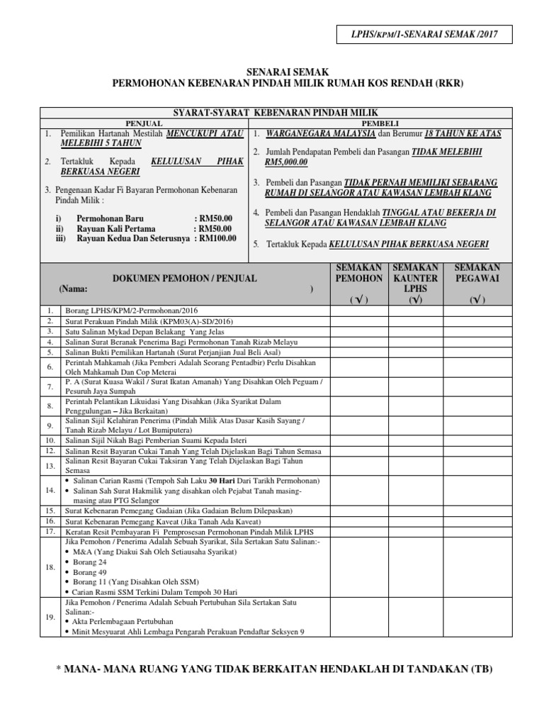 Borang Permohonan Kebenaran Pindahmilik Kedai Kos Rendah Kkr