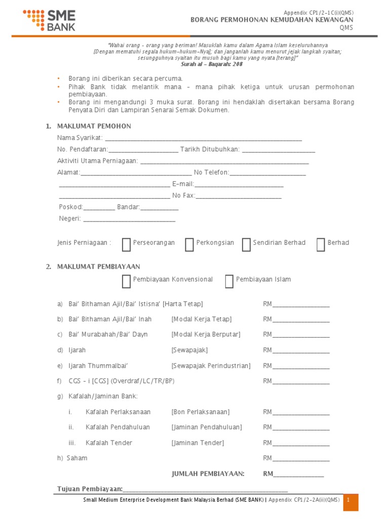 Pdf Borang Permohonan Pembiayaan Small Medium Enterprise Development Bank Malaysia Berhad 49572 H Christinasema Charles Academia Edu