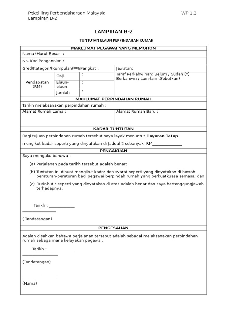 Borang Tuntutan Pindah Rumah Pertama