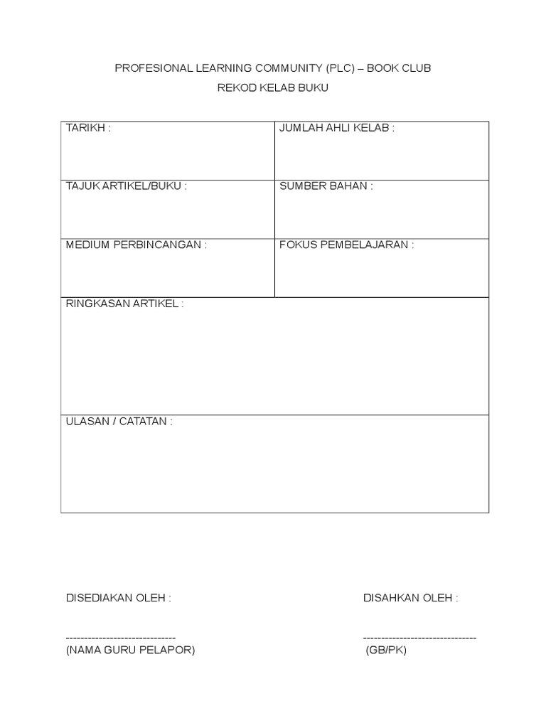Borang Plc Book Club