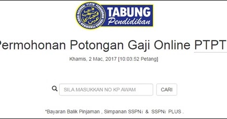 Permohonan Potongan Gaji Online Simpanan Sspn I