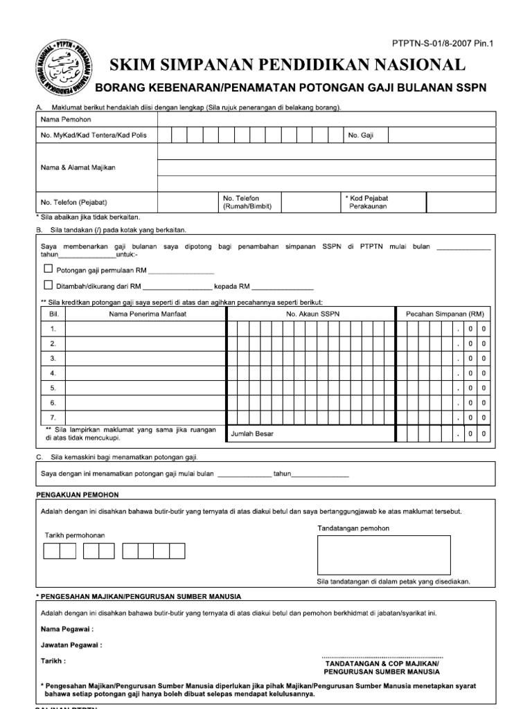Borang Potongan Gaji Sspn Pdf