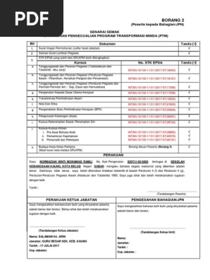 Peserta Kepada Bahagian Jpn Senarai Semak Permohonan Pengecualian Program Transformasi Minda Ptm Bil Dokumen Tanda Tanda