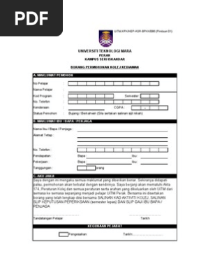Borang permohonan kolej kediaman rayuan pdf download 2. Uitm perak s logo seri iskandar pdf. Pastikan anda menekan butang sah hantar bagi menghantar borang permohonan.