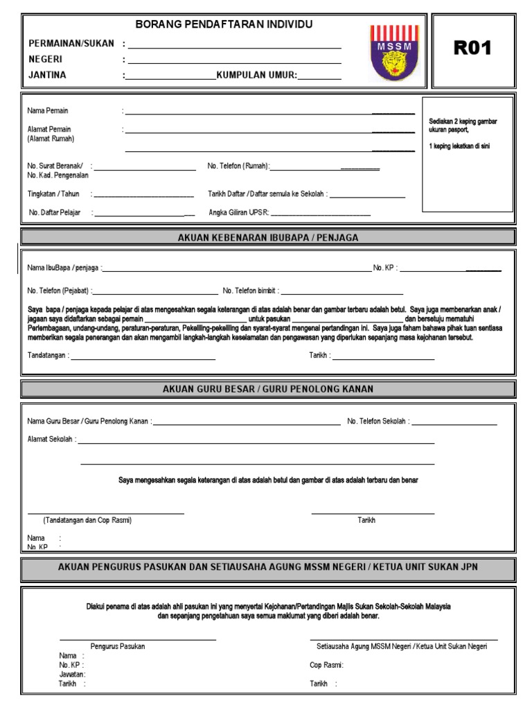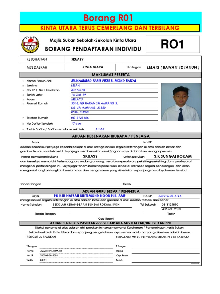 Borang Pendaftaran R01