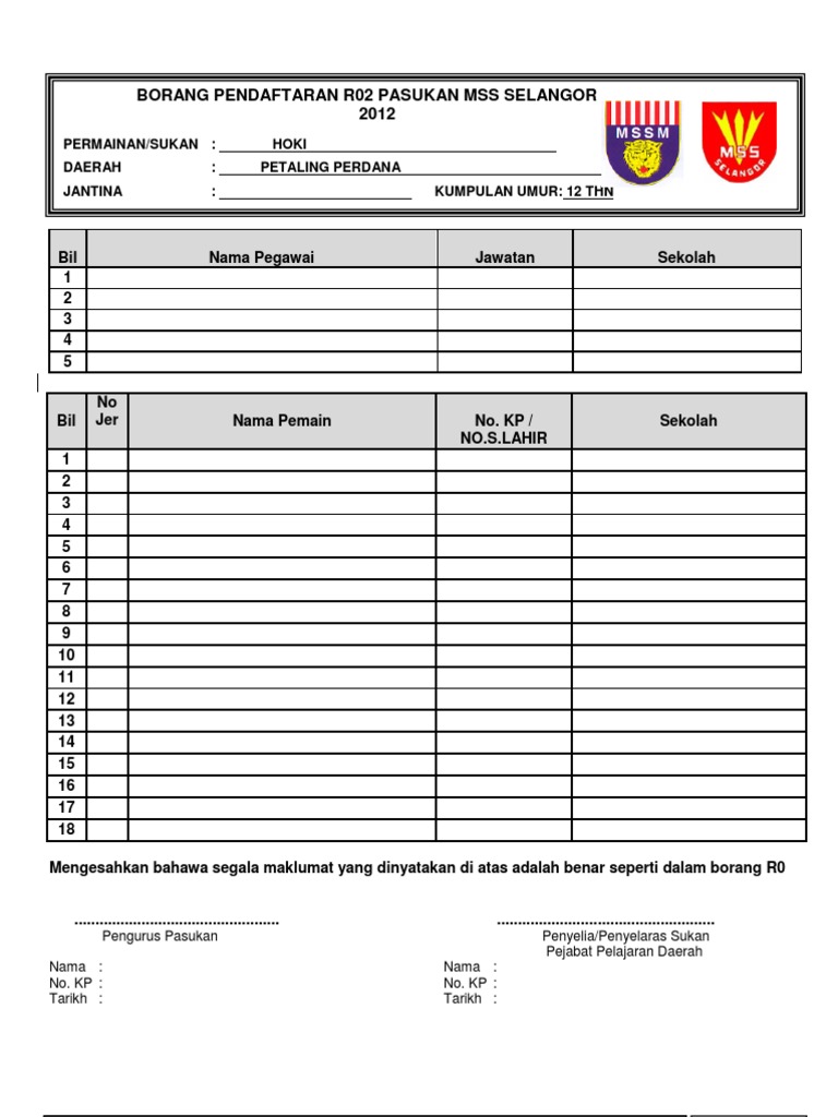 Borang R01 R02 Hoki