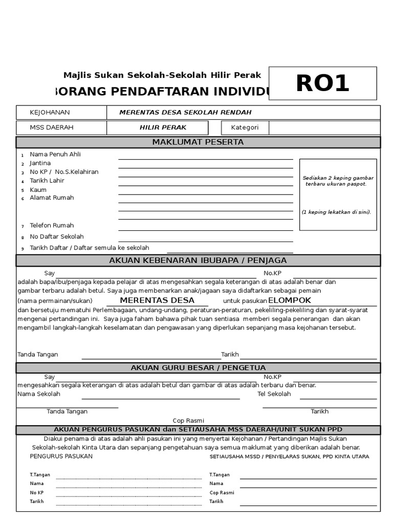 Borang Pendaftaran Individu Ro1